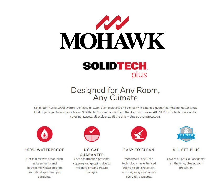 SolidTech Plus is 100% waterproof, easy to clean, stain resistant, and comes with a no gap guarantee. And no matter what kind of pets you have in your home, SolidTech Plus can handle them thanks to our unique All Pet Plus Protection warranty, covering all pets, all accidents, all the time – plus scratch protection.