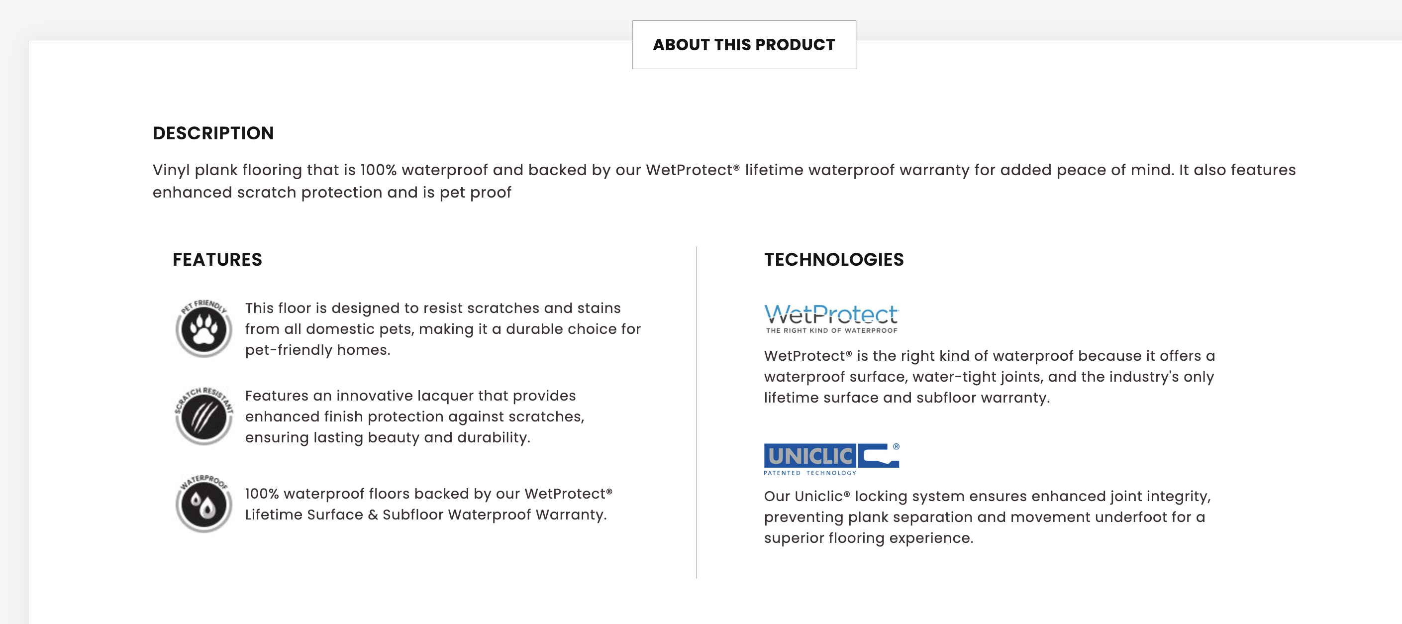 -These 100% waterproof, durable floors are ideal for every room in your home and come backed by our lifetime WetProtect® Gold floodproof warranty for our highest level of waterproof protection.