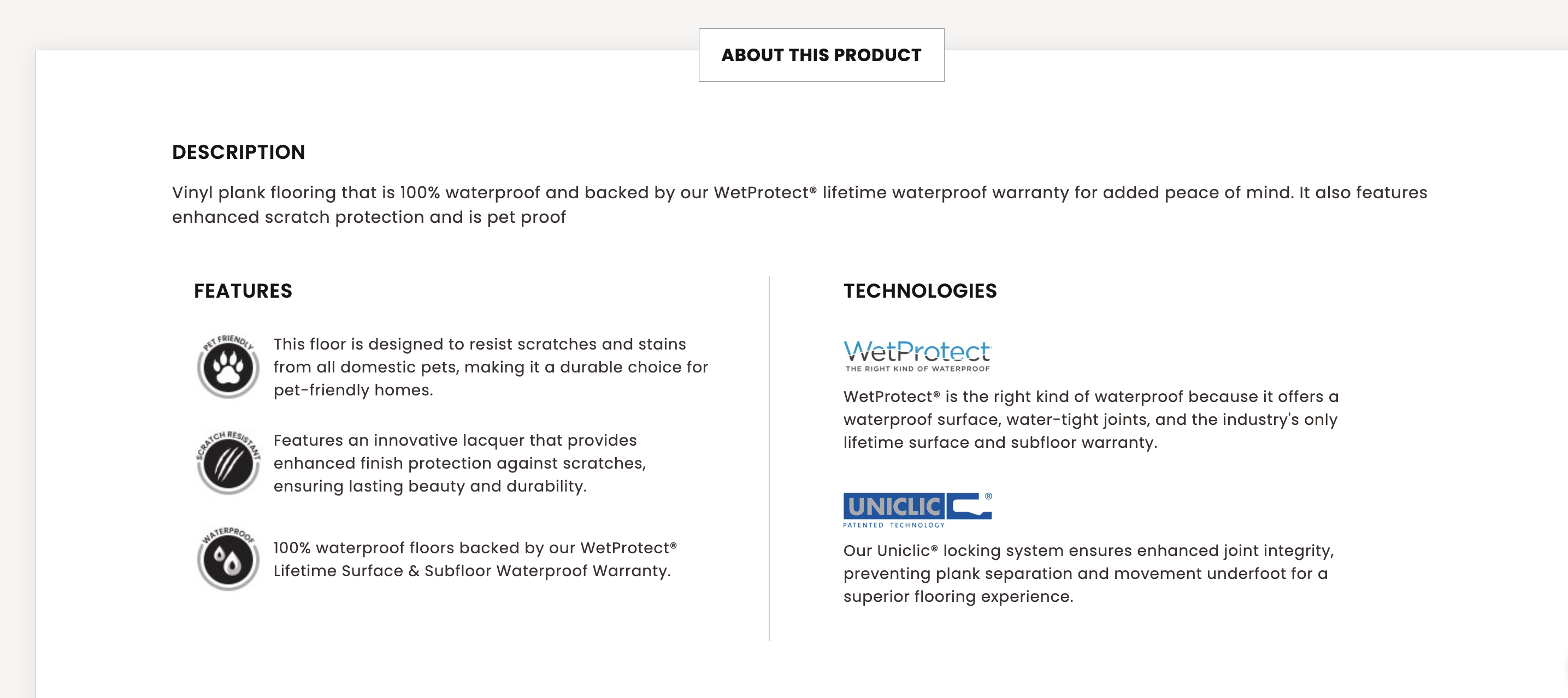 -These 100% waterproof, durable floors are ideal for every room in your home and come backed by our lifetime WetProtect® Gold floodproof warranty for our highest level of waterproof protection.