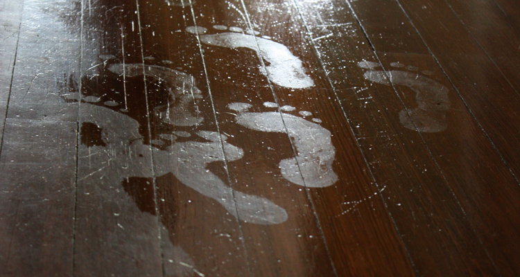 It’s important to be diligent about quick accident clean up. Standing moisture, whether it’s water, wet pet food, urine, vomit, hairballs, or fecal matter, is not good for hardwood flooring.